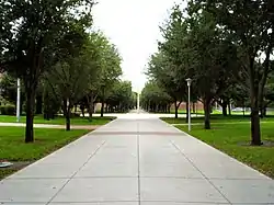 Most of the academic buildings are enclosed by or span a covered walkway over the perimeter of the original campus. In 2007, UTPA added a new wellness center,[12] and dormitory (Unity Dormitory 2007[13]). On the northeast corner of campus is the Edinburg Baseball Stadium, which is considered one of the premier college baseball settings. The stadium was completed in 2001.[14]