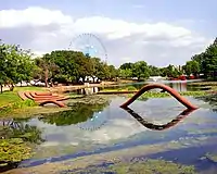 In 1981, Patricia Johanson was commissioned to redesign and restore the badly degraded lagoon. Since reopening in 1986, the redesigned lagoon has become recognized as a major earth sculpture and one of the earliest examples of art as bioremediation.[22]