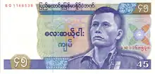 In 1987, his image was printed on the controversial 45 kyat banknote. In 2013, a statue was erected in Chauk which is a focal point of Workers' day celebrations.[1]