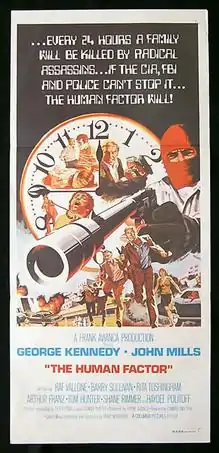 The "Human" Factor is a 1975 suspense-thriller film directed by Edward Dmytryk and starring George Kennedy, John Mills, Raf Vallone, Rita Tushingham, Barry Sullivan, and Haydee Politoff. A young Danny Huston appears in his acting debut.[1] The UK/US/Italy co-production was shot on-location in Naples. The soundtrack was by composer Ennio Morricone. It was Dmytryk's final theatrically released film.[2][3]