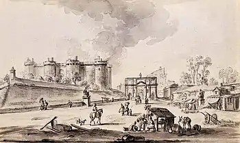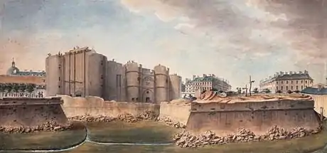 ![]() East view of the Bastille, drawing c. 1790 | |