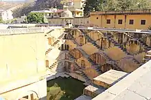 Principal photography began on 10 October 2010 in India.[8] Most of the filming took place in the Indian state of Rajasthan, including the cities of Jaipur and Udaipur.[9] In Jaipur, filming took place around the City Palace, the Marigold market, and on crowded buses. Other scenes were shot in Kishangarh, and on the outskirts of Jaipur, footage was shot at Kanota Fort, which stood in for the Viceroy Club. The place where Sonny and Sunaina meet in the film was shot nearby at the stepwell Panna Meena ka Kund near Amer Fort, a 10th-century establishment noted for its "ten stories of pale golden stone steps."[10][11][12] Ravla Khempur was chosen as the site for the Best Exotic Marigold Hotel; it is an equestrian hotel that was originally the palace of a tribal chieftain, located about an hour and a half outside of Udaipur in the village of Khempur.[9] Madden considered the building to have a magical quality and unmistakable charm, remarking that it had "something special that could ultimately draw the characters in. It had these wonderful cool dark interiors, with glimpses of saturated light and the teeming life outside its walls."[10] Production designer Alan MacDonald, who won Best Art Direction in a Contemporary Film from the Art Directors Guild for his work,[13] was brought in to embellish the interiors, intentionally making it clash with "interesting furniture inspired by colonial India, mismatched local textiles, all mixed together with modern plastic bits and pieces, with everything distressed and weather beaten."[10] Footage was also shot at the Lake Palace Hotel at Lake Pichola.[9]