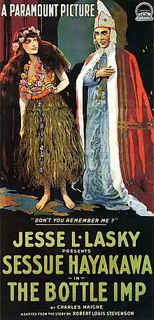 The Bottle Imp is a 1917 silent fantasy film produced by Jesse Lasky and distributed through Paramount Pictures. It is taken from the Robert Louis Stevenson short story, "The Bottle Imp". The movie was directed by Marshall Neilan in Hawaii and stars Japanese actor Sessue Hayakawa.[1][2]