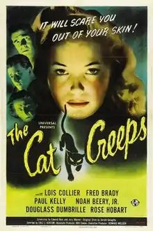 The Cat Creeps is a 1946 American film directed by Erle C. Kenton and starring Noah Beery, Jr., Lois Collier, and Paul Kelly.[2] It follows a journalist and his photographer who attempt to research an unsolved death and locate a missing fortune, with the help of a black cat that appears to be possessed by the spirit of a dead woman.
