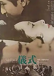 The Ceremony (儀式, Gishiki) is a 1971 Japanese drama film directed by Nagisa Ōshima, starring Kenzo Kawarasaki and Atsuko Kaku.[2] The film takes place in post-war Japan, following a family clan through their wedding and funeral ceremonies, and the lengths the elder generation goes to preserve their traditions in spite of the damage it causes to the younger.[3]