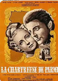 The Charterhouse of Parma (French: La Chartreuse de Parme, Italian: La Certosa di Parma) is a 1948 French-Italian historical drama film directed by Christian-Jaque and starring Renée Faure, Gérard Philipe and Maria Casarès. It is based on the 1839 novel of the same name by Stendhal. The film's sets were created by the art directors Jean d'Eaubonne and Ottavio Scotti and the costumes were designed by Georges Annenkov. The film was made at the Cinecittà Studios in Rome while location shooting took place in Italy around Milan and Lake Como.[2]