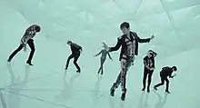 Shinhwa members vogue dancing in the "This Love" music video. (L to R: Shin Hye-sung, Jun Jin, Eric, Lee Min-woo, Andy and Kim Dong-wan)