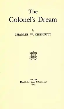 The Colonel's Dream is a novel written by the African-American author Charles W. Chesnutt. The novel is published by Doubleday, Page, & Co. in 1905. The Colonel's Dream portrays the continuing oppression and racial violence prominent in the Southern United States after the American Civil War.