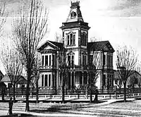 In 1864, the U.S. Congress appropriated money to build a U.S. mint in The Dalles that was to use gold from Canyon City for coinage. The supply of gold from Canyon City began to dwindle, however, and other problems, such as cost overruns, workers leaving to work the gold fields, and flooding from the Columbia River, also contributed to the project running two years behind schedule and led eventually to its demise. In 1870, the State of Oregon received the property from the U.S. Government and the building was put to other uses.[10] The mint is now home to Freebridge Brewing.[11][12]