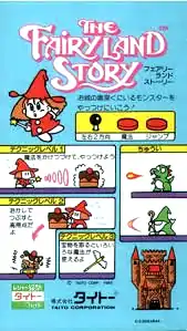 The Fairyland Story[lower-alpha 1] is a platform arcade video game developed and published by Taito in 1985. In the game, the player controls the witch Ptolemy, with the objective being to clear the screen of all enemies. Ptolemy can use her wand to turn the enemies into large cakes, which she can then push off of platforms onto other enemies, which will squash them and award bonus points. Various items that increase Ptolemy's projectile radius, as well as kill multiple enemies at the same time, will also appear throughout the stages.