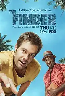 The Finder is an American procedural drama television series created by Hart Hanson that ran as a midseason replacement on Fox from January 12, 2012, to May 11, 2012. The series originally aired on Thursdays at 9:00 pm,[1] and moved to Fridays at 8:00 pm beginning April 6, 2012.[2] It is a spin-off of another Fox television series, Bones, where the backdoor pilot, a season-six episode entitled "The Finder", aired in April 2011. It is loosely based on The Locator series of two books (The Knowland Retribution and The Lacey Confession) by Richard Greener. On May 9, 2012, Fox cancelled the series after its one limited season.[3][4]
