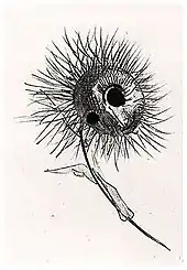 Oshimi first read Charles Baudelaire's Les Fleurs du mal in middle school and found the book to feel "suspicious, indecent, yet nastily noble". He based the eye-flower in the series on an illustration for the book by Odilon Redon, his favorite artist.[5] Oshimi also makes references to other artists such as with the cover of the tenth chapter parodying Francisco Goya's The Clothed Maja.[6]