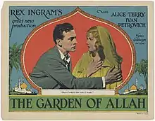 The Garden of Allah is a 1927 American silent romantic drama film directed by Rex Ingram, his final film for Metro-Goldwyn-Mayer. The film stars Ingram’s wife, actress Alice Terry and Iván Petrovich. Due to the public's apathy towards silent films, a sound version was prepared and released in 1928. While the sound version has no audible dialog, it features a synchronized musical score with sound effects. The film was released in both sound-on-disc and sound-on-film formats.