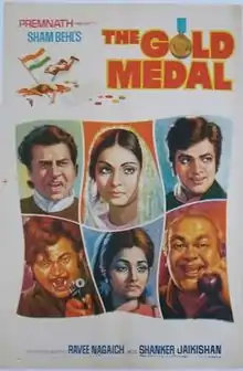 The Gold Medal is a 1984 Hindi-language spy film, produced by Sham Behl under the Time Films banner and directed by Ravikant Nagaich. It stars Jeetendra, Rakhee Gulzar, Shatrughan Sinha while Dharmendra in a special appearance. The music was composed by Shankar Jaikishan.[2][3][4][5][6] Starting from 1969, this movie had faced many types of problems, so it's become a delay released movie and was released in 1984.
