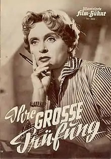 The Great Test (German: Ihre große Prüfung) is a 1954 West German drama film directed by Rudolf Jugert and starring Luise Ullrich, Hans Söhnker and Karin Dor.[1] It was shot at the Spandau Studios in West Berlin and on location around the city. The film's sets were designed by the art director Gabriel Pellon.