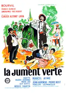 The Green Mare (French: La jument verte) is a 1959 French comedy-drama historical film directed by Claude Autant-Lara and starring Bourvil, Francis Blanche, Sandra Milo and Yves Robert. The story is set during the latter half of the 19th century and follows two feuding peasant families. It is based on the novel The Green Mare by Marcel Aymé.