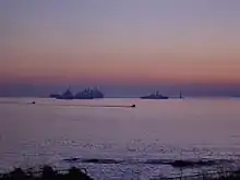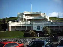 From 1880 there was a popular bandstand on the Hoe. It was removed for scrap metal during the Second World War and never rebuilt.[7] A three tier belvedere built in 1891 survives;[8] it was built on the site of a camera obscura, probably built in the 1830s, which showed views of the harbour.[9] Below this site was the Bull Ring (now a memorial garden),[8] and a grand pleasure pier, started in 1880, which provided a dance hall, refreshment, promenading and a landing place for boat trips.[10] The pier was destroyed by German bombing in World War II.