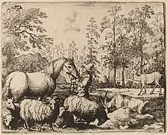 The fable of how the horse lost its liberty in the course of settling a petty conflict exists in two versions involving either a stag or a boar and is numbered 269 in the Perry Index.[1] When the story is told in a political context, it warns against seeking a remedy that leaves one worse off than before. Where economic circumstances are involved, it teaches that independence is always better than compromised plenty.