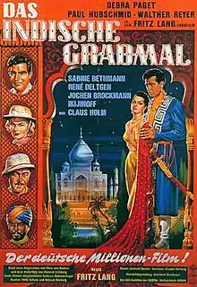 The Indian Tomb (Das indische Grabmal in its original German) is a 1959 West German-French-Italian adventure drama film. It was produced by Artur Brauner, directed by Fritz Lang, and stars Debra Paget, Paul Hubschmid, Walter Reyer, Claus Holm, Valéry Inkijinoff, and Sabine Bethma.