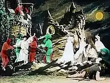 The Kingdom of the Fairies was released by Méliès's Star Film Company and is numbered 483–498 in its catalogues.[1] (In Méliès's numbering system, films were listed and numbered according to their order of production, and each catalogue number denotes about 20 meters of film.)[6] The film was registered for American copyright at the Library of Congress on 3 September 1903.[1]