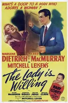 The Lady is Willing is a 1942 American screwball comedy film produced by Columbia Pictures, starring Marlene Dietrich and Fred MacMurray, directed by Mitchell Leisen.[1]