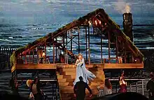 "The Last Great American Dynasty" narrates the story and satirizes the vilification of American socialite and composer Rebekah Harkness, who previously inhabited the Holiday House—Swift's mansion in Watch Hill, Rhode Island.[10][11] Written in a townsfolk third-person narrative, it details the following: Rebekah West, a middle-class divorcée from St. Louis, married William "Bill" Harkness in 1947, who was the heir to Standard Oil, an oil-refining company that was the 19th-century's first and largest multinational corporation in the world. The couple bought a seaside estate in Watch Hill, Rhode Island, and nicknamed it "Holiday House". Bill died of heart attack in 1954, for which Rebekah was blamed by the town. After her then-husband's death, Rebekah inherited his enormous wealth and became one of the wealthiest women in the US.[12][13][14][15]