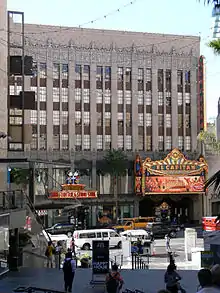 Other filming locations included Greystone Mansion in Beverly Hills, Pink Palace Mansion in Bel Air, the Crossroads of the World, Grauman's Chinese Theatre, and the City National Plaza in downtown Los Angeles (acting as the interior of Richman Oil's headquarters, although the Bank of America Center is represented instead).[14] Scooter's scene in the Muppet reunion montage was filmed at Google's Zurich headquarters in Switzerland. Although principal photography was completed on February 11, 2011,[70] on April 26, 2011, a second unit film crew traveled to Reno, Nevada to film some exterior shots, including a scene in the Bonanza Casino parking lot with some Muppet characters, and a small shot looking into the casino.[71]