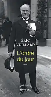 - ↑ Eric Vuillard (2018). The order of the day. Translated by Mark Polizzotti. New York: Other Press.