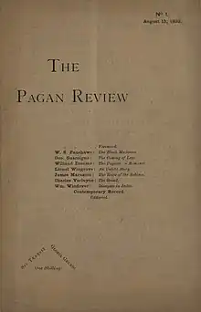 The first issue of The Pagan Review was published on 15 August 1892 and contained the following texts, all written by Sharp under a variety of pseudonyms.[3]