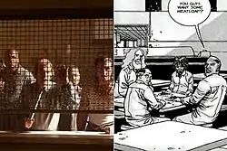 ![]() The prisoners depicted in the television series (left) and comic book series (right). | |