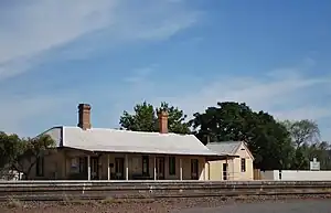 The Rock railway station is a heritage-listed railway station and antique shop located on the Main South line in The Rock in the Lockhart Shire local government area of New South Wales, Australia. The station is also known as The Rock Station and yard group. The property was added to the New South Wales State Heritage Register on 2 April 1999.[1]