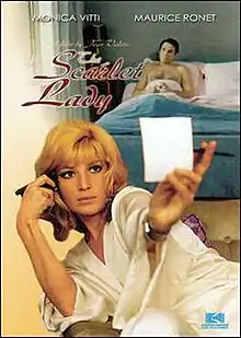 The Scarlet Lady (French: La femme écarlate; Italian: La donna scarlatta) AKA The Bitch Wants Blood is a 1969 French/Italian comedy film directed by Jean Valère and starring Monica Vitti, Maurice Ronet, and Robert Hossein. Written by Paul Gégauff and Jean Valère, the film is about a beautiful Italian businesswoman who, after being swindled out of her fortune by her boyfriend, travels to Paris to kill him before killing herself.[1]