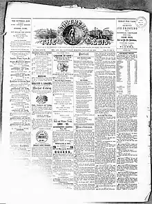Cox's editorial tone was overwhelmingly negative towards the Union, and he became known as an "editor of the old school, violent in his sympathies and in his editorials" with a signature "old fashioned Jacksonian style."[3] The Aegis and the other local paper, the National American, became voices for the opposing sides of the national conflict; The Aegis was even referred to by a Baltimore newspaper as "the Traitor Aegis".[4]