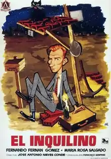 The Tenant (Spanish: El inquilino) is a 1957 Spanish drama film directed by José Antonio Nieves Conde and starring Fernando Fernán-Gómez about how difficult it was to find an affordable flat in Madrid.[1] At the time it was banned by Spanish censors, and when it was re-released two years later, the film was edited, the dialogue was sanitized for political purposes, and the ending was changed to a happier one. It also failed at the box office.