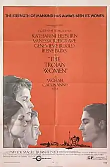 The Trojan Women (Greek: Τρωάδες) is a 1971 American-British-Greek drama film directed by Michael Cacoyannis and starring Katharine Hepburn, Vanessa Redgrave, Geneviève Bujold and Irene Papas. The film was made with the minimum of changes to Edith Hamilton's translation of Euripides' original play, save for the omission of deities, as Cacoyannis said they were "hard to film and make realistic".