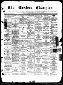 The newspaper was published under the name The Western Champion and General Advertiser for the Central-Western Districts from 1892 to 1922 by William Henry Campbell, Charles John James and Frederic Robert James.[2]