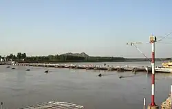 The yellow sediments were carried downstream from the Loess Plateau.[7] There are frequent devastating floods and course changes produced by the continual elevation of the river bed, sometimes above the level of its surrounding farm fields.