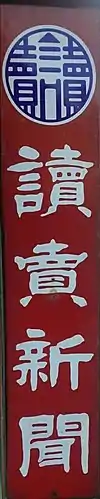 In addition, in the TV program credits, or in the program produced by the Yomiuri Shimbun during the "news & culture" time of Nippon Telesitas, it used to be written with the same brush as the title (the notation is "Yomiuri Shimbun <sha>"). However, currently, the subtitles of "Yomiuri Shimbun" in blue round characters are used.