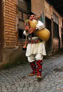Although this theatre includes a number of characters-puppets, its eminent theatricality emerges from the complex relation between its central masks of Karagoz and Hadzivat. Karagoz personifies an ordinary Greek in the Ottoman Empire. He is dressed simply as any other passers-by on the streets of Constantinople. He speaks plainly and in a language common to the people. He is clever and stupid at the same time, naive and witty. Although he is as poor as a dog, he desires only to eat his bread in without distraction or interference. Equally important is his teasing his constantly angry enemy, whose name is Hadzivat and who is a little bit slow, but not necessarily stupid. Hadzivat speaks conceitedly using archaic words, pretending to be wise and in actuality being a boringly pedant, rigid, corruptible, opportunist who constantly emphasizes his aristocratic origin. Karagoz Theatre is Turkish folk humor at its best. The famous Turkish traveler and diplomat, Evlija Celebija, traveled in the Balkans in the first half of the 17th century and wrote about his travels in ten books in which he discusses performances of Karagoz in Bosnia, Serbia, and in the republic's capital Skopje. Karagoz Theatre was brought to the region by the Ottoman Turks and easily adapted to the new environment, existing for centuries up to the 1950s.