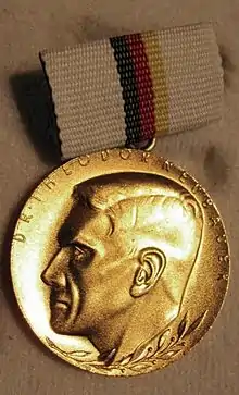 In East Germany, Theodor Neubauer was honored as an anti-fascist resistance fighter. Streets and schools were named after him and monuments erected in his honor. In 1969 the Erfurt/Mühlhausen University of Education was named after him.[5] After 1990, these honors were withdrawn in most places. Since 1992, one of the 96 memorial plaques for members of the Reichstag murdered by the Nazis near the Reichstag in Berlin has commemorated Neubauer. In the memorial for the anti-fascist resistance fighters executed in the Brandenburg-Görden prison in Brandenburg an der Havel, Theodor Neubauer is mentioned as one of the four executed. The Dr.-Theodor-Neubauer-Medaille was established by the East German government in 1959.