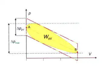 If the cyclic process moves clockwise around the loop, then W will be positive, and it represents a heat engine. If it moves counterclockwise, then W will be negative, and it represents a heat pump.