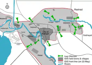 - 1 2 "Iraqi, allied militias advance on Fallujah; new tactics squeeze ISIS". Rudaw English. Archived from the original on 27 March 2019. Retrieved 25 May 2016.