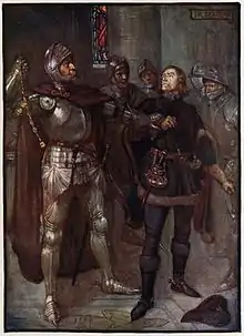 ![]() A 1906 illustration depicting Robert Cochrane (right) being arrested by the Earl of Angus in 1482 | |