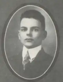 Dewey was born and raised in Owosso, Michigan, where his father, George Martin Dewey, owned, edited, and published the local newspaper, the Owosso Times.[4] His mother, Annie (Thomas), whom he called "Mater," bequeathed her son "a healthy respect for common sense and the average man or woman who possessed it." She also left "a headstrong assertiveness that many took for conceit, a set of small-town values never entirely erased by exposure to the sophisticated East, and a sense of proportion that moderated triumph and eased defeat."[5] One journalist noted that "[as a boy] he did show leadership and ambition above the average; by the time he was thirteen, he had a crew of nine other youngsters working for him" selling newspapers and magazines in Owosso.[6] In his senior year in high school he served as the president of his class, and was the chief editor of the school yearbook.[7] His senior caption in the yearbook stated "First in the council hall to steer the state, and ever foremost in a tongue debate", and a biographer wrote that "the bent of his mind, from his earliest days, was towards debate."[6] He received his B.A. degree from the University of Michigan in 1923, and his LL.B. degree from Columbia Law School in 1925.[8][9]