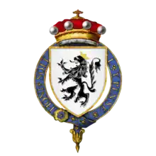 - (1) before 3 April 1374, Joan de Hastings[2] (Norfolk, 1357 - before 1380), daughter of Sir Hugh de Hastings, Knt. (died c. 1369), by Margaret de Everingham, daughter of Adam de Everingham 2nd Baron Everingham, by whom Lord Morley had one son, Sir Robert de Morley, Knt. (circa 1375 - before 12 November 1403), d.v.p., who married before August 1394 Isabel de Molines and had Thomas de Morley, 5th Baron Morley. She is buried in the Church of the White Friars, Norwich, Norfolk.
