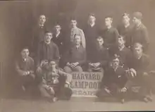 "Thayer's Harvard Lampoon staff was talented and privileged. Future philosopher George Santayana was an editor who focused on illustrations, and William Randolph Hearst, the inspiration for Citizen Kane, was a business editor. Thayer was neither the most accomplished nor prolific poet of his peer group; most of his contributions were brief 'insider' prose pieces. The Lampoon's premier poet, Thomas Parker Sanborn, succeeded Thayer as editor (president) in 1886."[4]