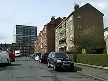 Thornwood's boundaries are not precisely defined but could be seen as the territory between Crow Road, Thornwood Drive and Dumbarton Road, a small but densely populated area dominated by four-storey tenements.[1][2] It was part of the burgh of Partick until the absorption of that burgh into the expanding city of Glasgow in 1912.[3][4] Most local amenities can be found in Partick or Broomhill, including a retail park, Gartnavel General Hospital, the University of Glasgow and Byres Road, popular for socialising, within 1 mile (1.6 km) distance, although Thornwood does have its own selection of small shops and bars.[5]