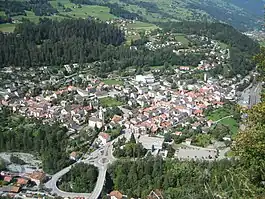 Thusis is first mentioned in 1156 as Tosana.[3] The town was devastated by more than 10 fires[4] and after the one of 1845, it had to be rebuilt.[5]