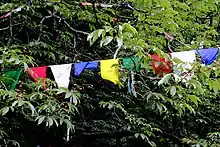 The Cuisine of Tibet is quite distinct from that of its neighbours. Tibetan crops must be able to grow at high altitudes, although a few areas in Tibet are low enough to grow such crops as rice, oranges, lemon and bananas.[10] The most important crop in Tibet is barley. Flour milled from roasted barley, called tsampa, is the staple food of Tibet. It is eaten mostly mixed with the national beverage, the butter tea. Butter tea perfectly fits the needs of the human body in these high altitudes as it contains butter (protein and fat), milk (protein, fat and calcium), salt and tea. Tibetan cuisine contains a wide variety of dishes. The most famous are Momos (Tibetan dumplings). Balep is Tibetan bread eaten for breakfast and lunch. There many other types of balep bread and fried pies. Thukpa is noodle soup. It consists of noodles of various shapes, vegetables, and meat in broth. Tibetan cuisine is traditionally served with bamboo chopsticks, in contrast to other Himalayan cuisines which are eaten by hand. Small soup bowls are also used by Tibetans, and the rich are known to have used bowls of gold and silver.[11] Since only a few crops grow at such high altitudes, many features of Tibetan cuisine are imported, such as tea, rice and others. Meat dishes are likely to be yak, goat, or mutton, often dried, or cooked into a spicy stew with potatoes. Tibetans would never eat dogs and fish only in special cases as dogs are regarded as domestic animals and also guard dogs, and fishes are one of the Eight Auspicious Symbols of Buddhism.