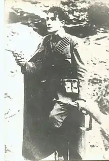 After the St Nedelya Church assault in April 1925, he became increasingly radical and active in anti-government groups. He came into contact with Vasil Popov, with whom he created an anti-government guerrilla group of anarchists and communists Guéroïa. In 1924 and 1925, many anarchist groups fled to the west, but Simov and Popov remained in Bulgaria.[6] On November 23, 1925, Simov led an attack on the city governments of the villages of Balgarene and Kazachevo.[7] In 1927, they attempted to rob the Zemedelska Bank in Troyan. In the ensuing firefight Popov, heavily wounded, reputedly killed himself in order to avoid capture. Simov escaped. In 1928 Simov became the head of another small group of anarchists and communists. Pressured by police prosecutions, the group fled to Yugoslavia. In the ensuing years, Simov traveled throughout Europe, searching for connections with other anarchist organizations. In 1934 he returned to Bulgaria and made attempts to resurrect his activities without much success.[8] There are multiple accounts of his death.[1] In one, he hid for some time in the village of Lomec, Troyan. In 1935 his hideout was surrounded by the police, but heavily wounded he still managed to escape. He came back to Balgarene, where he hid in a barn for several days. After a betrayal, the police yet again surrounded Simov and during the firefight he killed himself.[3][8] In another, he was killed by Stalinists after they took power in 1944. There was a photograph of a cadaver reproduced in the press of that time and said to be Simov, but that may have been the body of one of Simov's collaborator.[1]